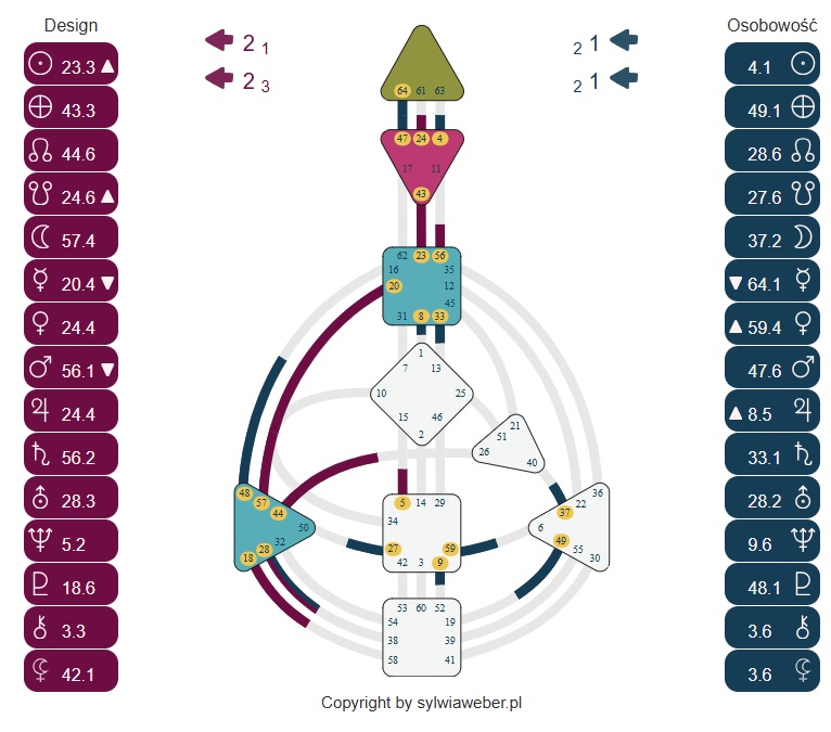 W Human Design istnieją 64 Bramki, a Ty masz aktywowanych 26 Bramek (lub mniej, jeśli aktywacje się powtarzają) – to Twoje unikalne dary, które możesz wykorzystać w codziennym życiu.
